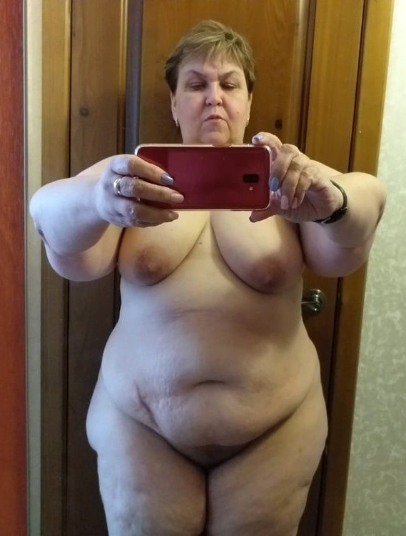 Photoshooting upon naked granny selfshot